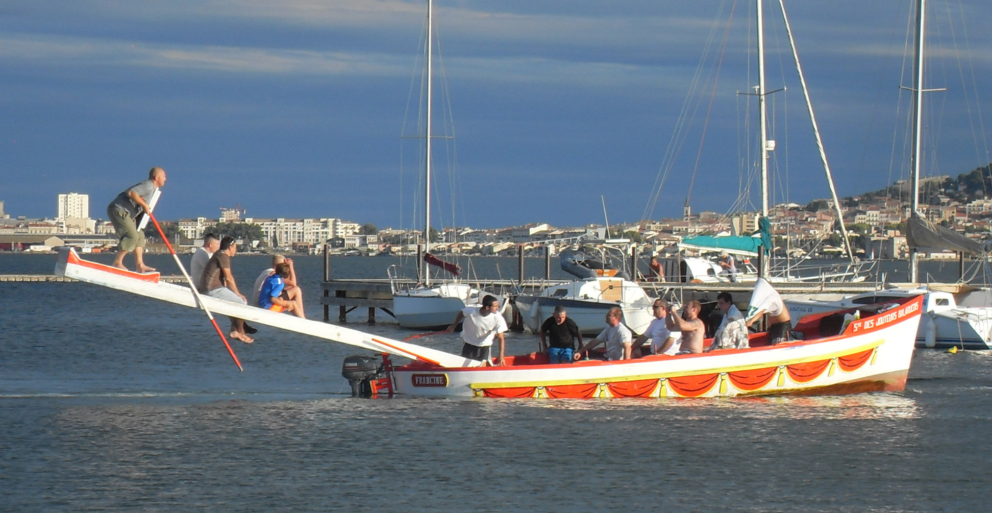Men första gången vi åt Chevre chaud med apelsin var i en liten stad utanför Sete i södra Frankrike. Restaurangen låg vid kajkanten och utanför fönstret tränade de unga männen tornerspel med båt.