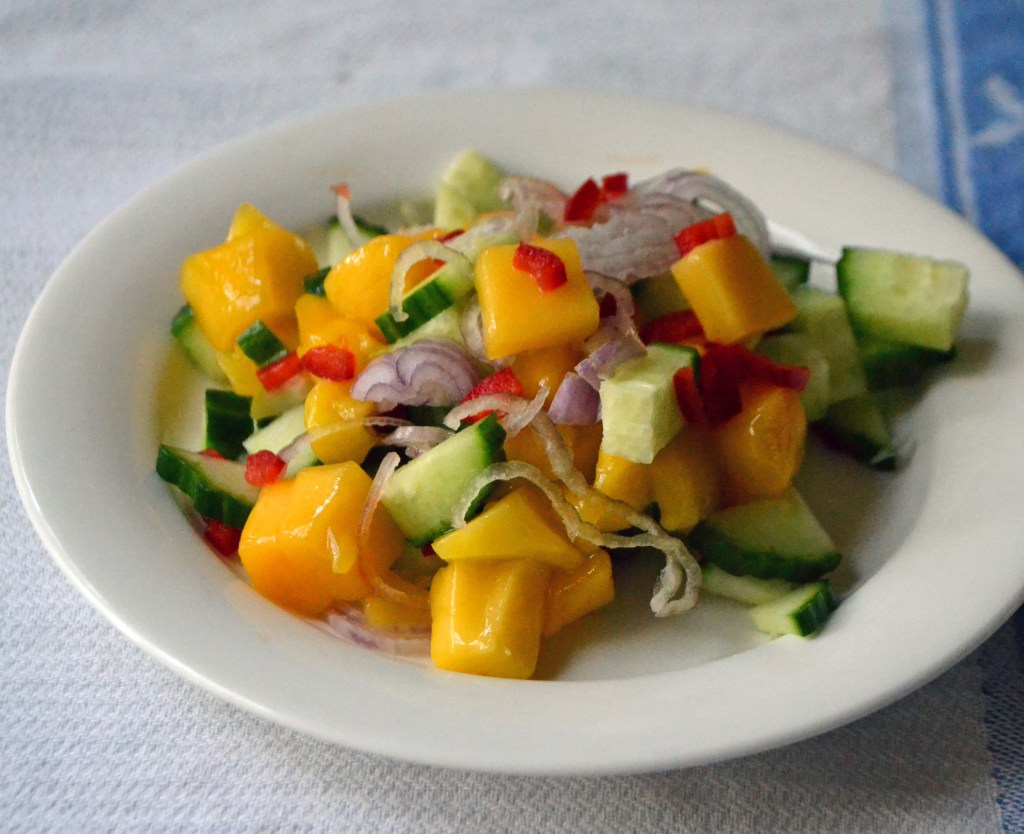 Mangosallad blir en fräsch, god och sötfruktig sallad, som gjord för de varma sommarkvällarna. Den passar perfekt till grillat fläskkött, gärna med en söt eller stark glaze.