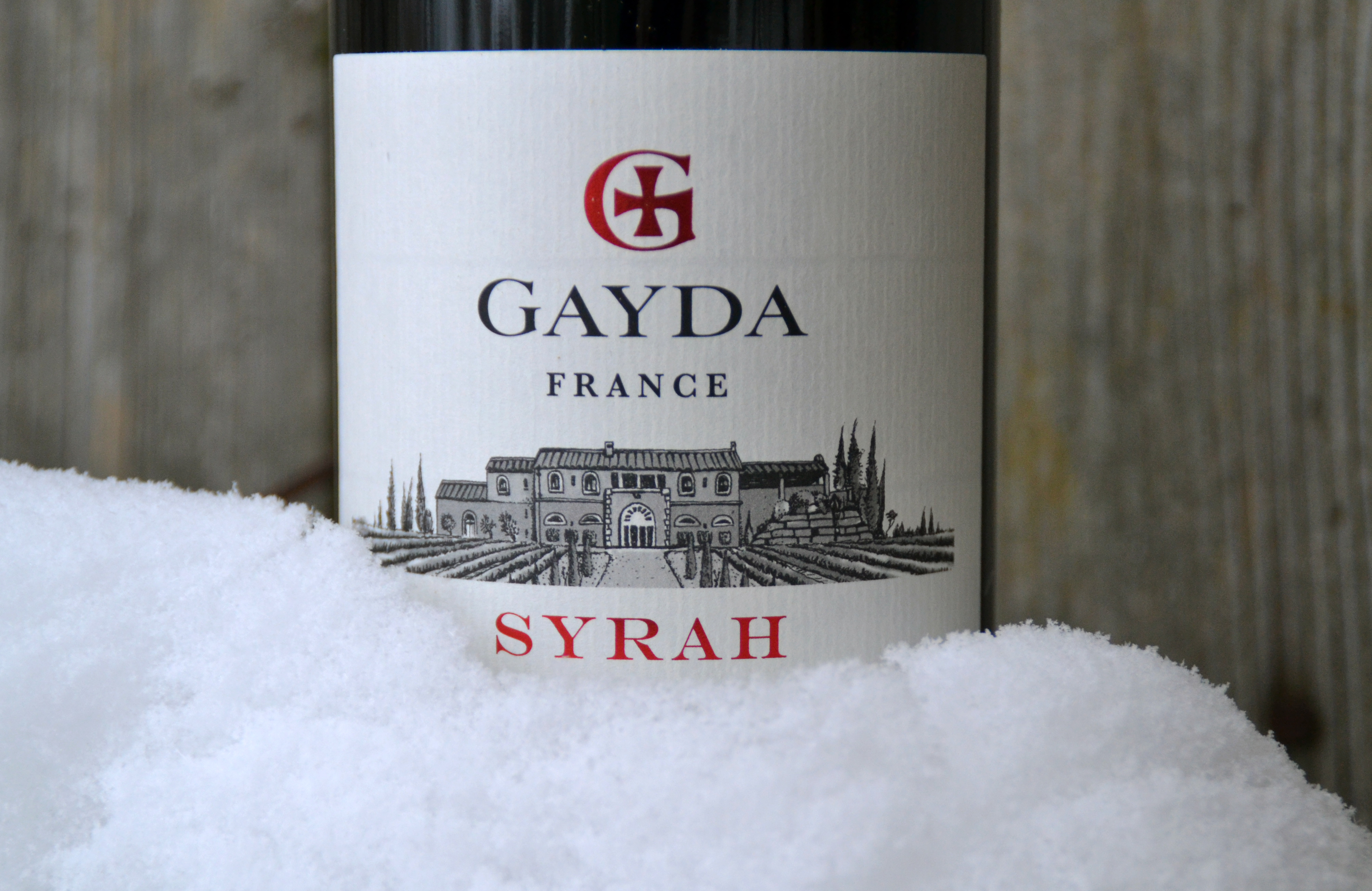 Snön lägger sig som ett ulligt moln runt omkring flaskan när jag ska fota den. Det är lite ovant sällskap för det här sydfranska vinet från Pyrenéernas nordsluttningar.