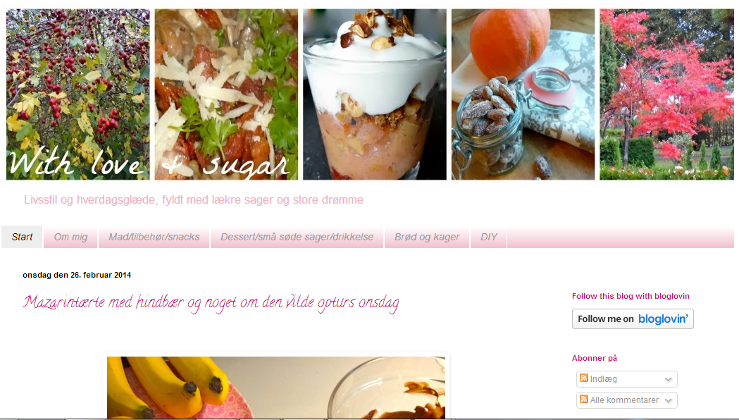 Därför blev jag lite förskräckt när jag i en bloggutmaning parades ihop med den danska bloggen With love & sugar. Jag klickade in på bloggen och hittade fullt med efterrättstårtor, chokladrätter och mazariner.