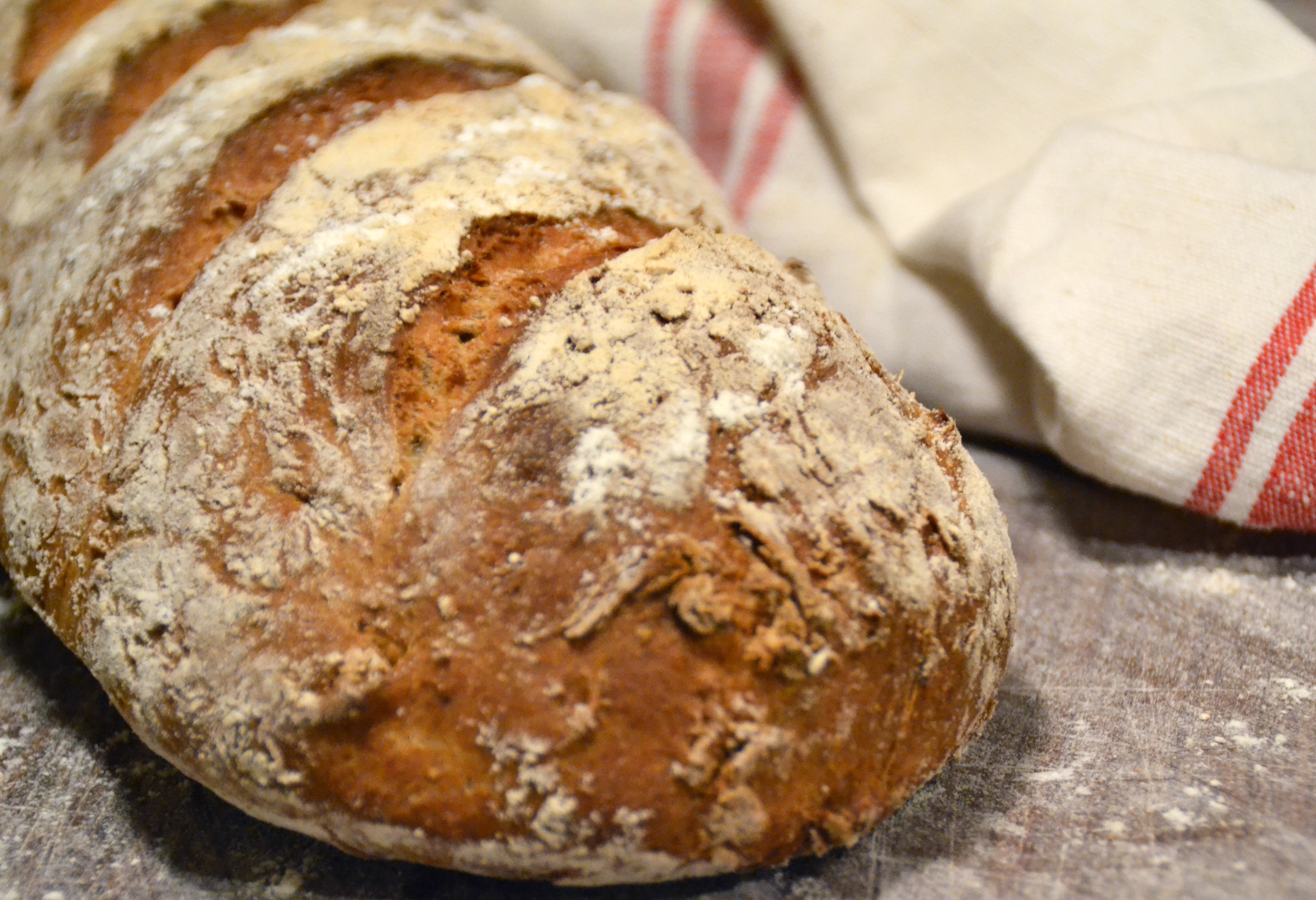 Här har en grov dinkeldeg fått jäsa i två steg, Resultatet är smakrikt, gott och mycket långt från de bröd som säljs på Ica och Coop.