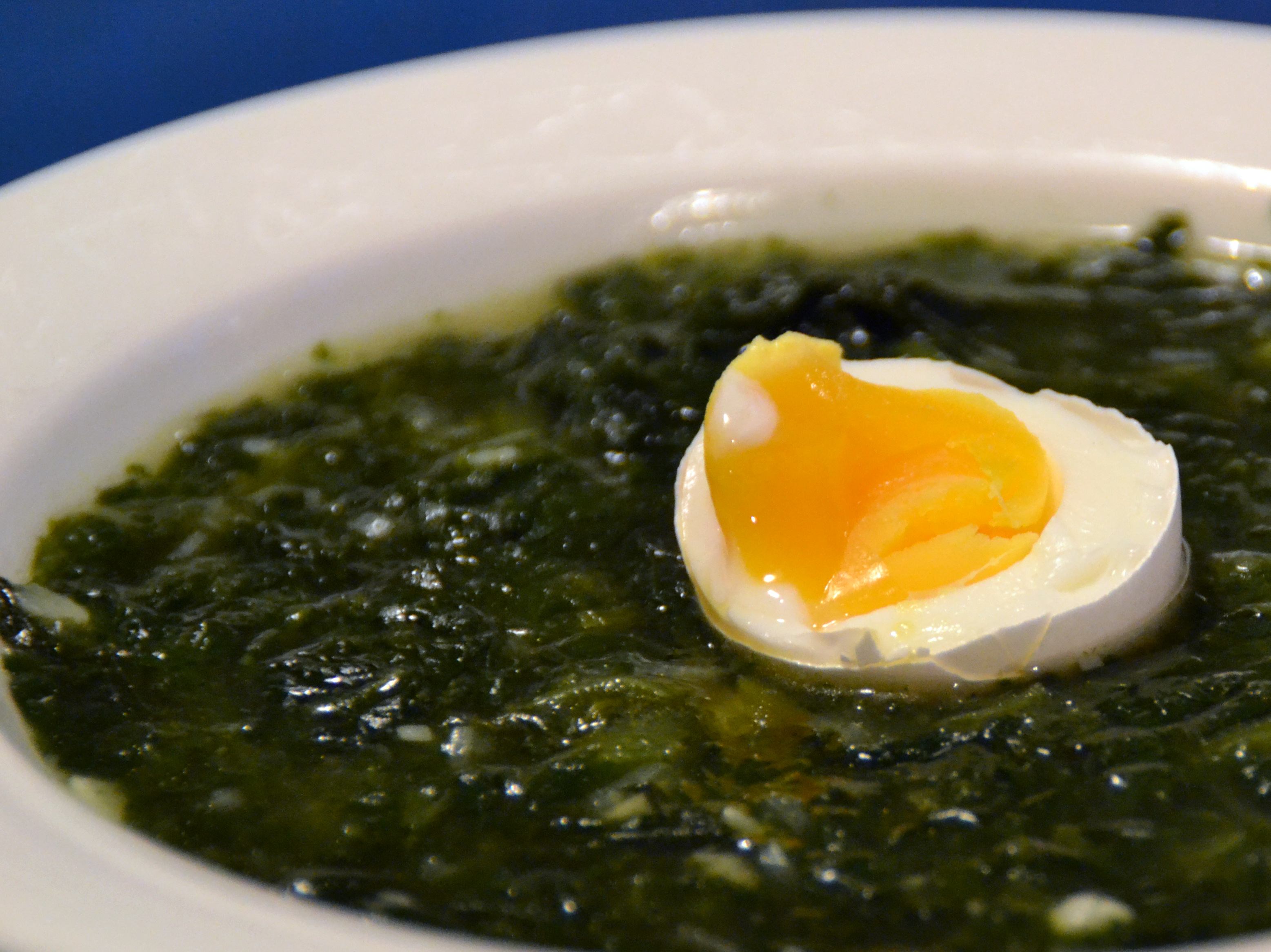 Det blev Kryddig spenatsoppa med ägg. Lite vårligt med spenat och ägg. Ändå varmt och värmande för oss dårar som glömt bort att det fortfarande var mars månad.