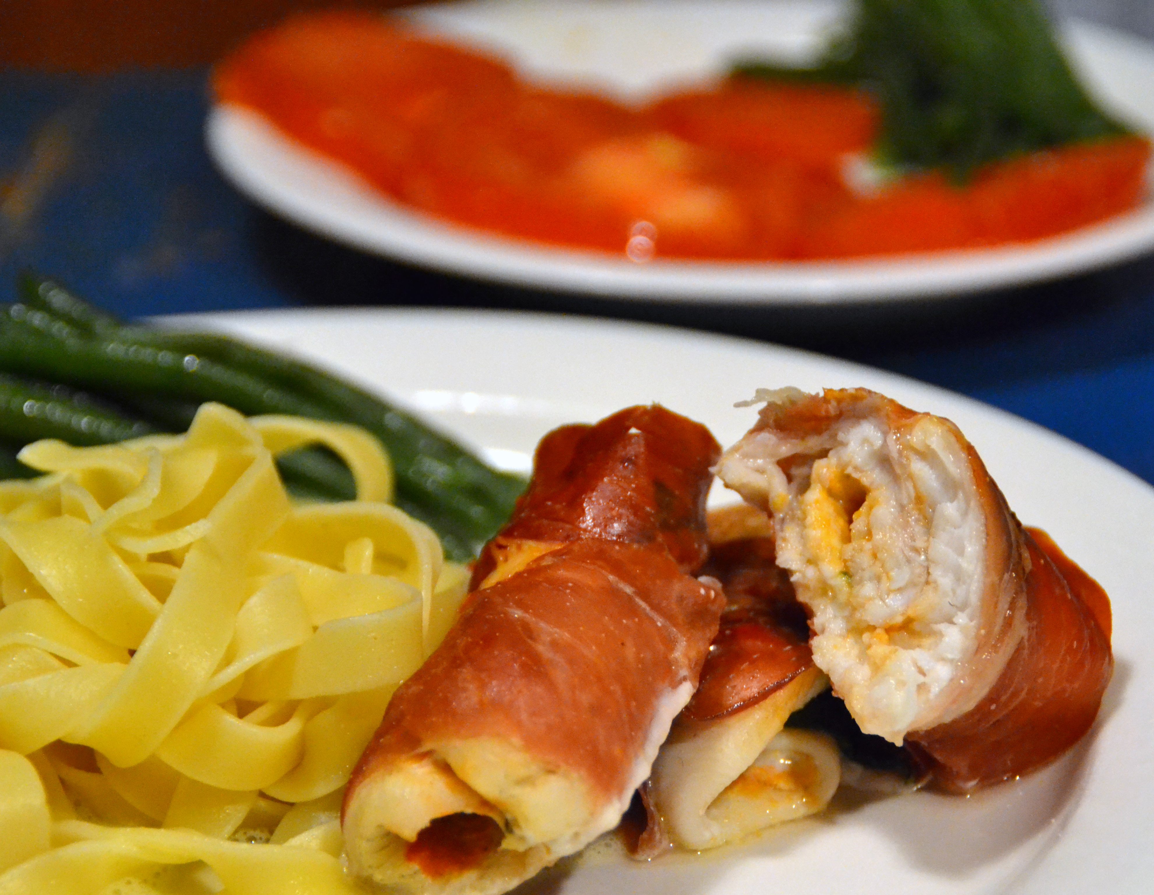 Vi åt rödspättarullarna tillsammans med tagliatelle och gröna bönor – en delikatess om man behandlar den vänligt.