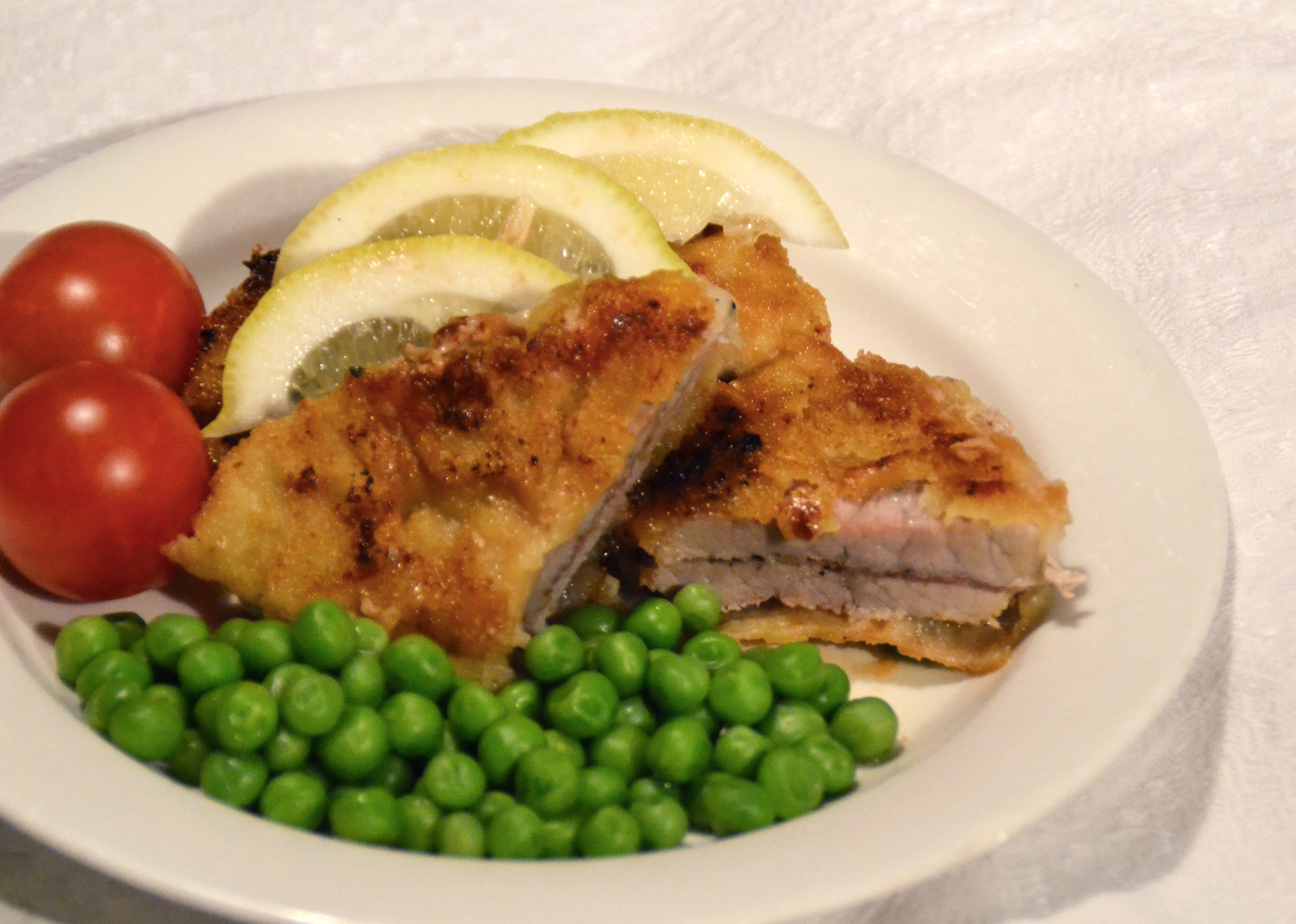 Den här schnitzeln gjorde jag i helgen när jag bjöd en kompis på mat. Han skickade ett sms dagen efter och undrade vad jag egentligen stoppar i maten eftersom han alltid blir så sugen på att äta samma sak igen – jag antar att det var menat som beröm…
