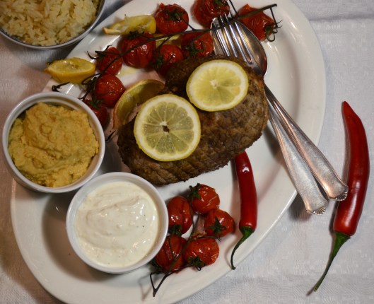 Ät & njut av lammsteken. Glöm inte kryddhummus och den svalkande citronyoghurten – och glöm inte ett glas rödvin, men det behöver jag väl inte påpeka.
