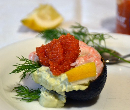 Till slut ger jag mig ut på en runda och köper avokado, räkor och crème fraiche. Tillsammans med stenbitsrommen blir det en avokadomousse med rom & räkor. Gott – om du frågar mig och hustrun.