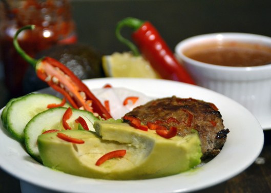 Blanda ihop fisksås, vatten, socker, vinäger, riven ingefära och sambal oelek. Rör så att socker löser upp sig. (Har du ingen sambal hemma funkar det lika bra med strimlad chili).