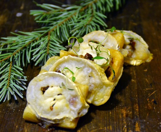 Vill man ha tilltugg kan man göra små ”tarte” med rödlök & chèvre som syns på bilden här ovanför. Fräscht och lite syra – och superenkelt om man använder färdig smördeg.