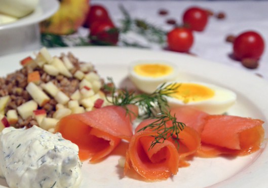 Men kallrökt lax är också en favorit. Testa Kallrökt lax med dillcrème, ruccola & apelsin. I receptet står det att laxen ska ligga på en brödskiva. Det är egentligen helt onödigt, så hoppa gärna över brödbiten. Eller låt laxen få lite annat sällskap: Kallrökt lax med äpple matvete & dillcrème.