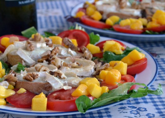Här har vi svurit i den franska matkyrkan och lagt till mango. Inte ett dugg franskt, men gott när den söta mangosmaken bryter mot den syrliga osten.