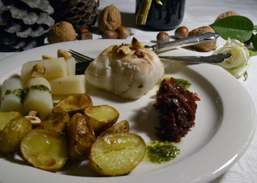 Testa i så fall torskrygg till trettondehelgen. Det är en fiskbit som jag blir lika glad av varje gång. Lätt att lyckas med – den blir så där skivig och smakrik som torsk är på krogen, särskilt om man snabbrimmar den. Här får den sällskap av smakrik örtolja, rostad hasselnöt med crunch och balsamicokokt rödlök.