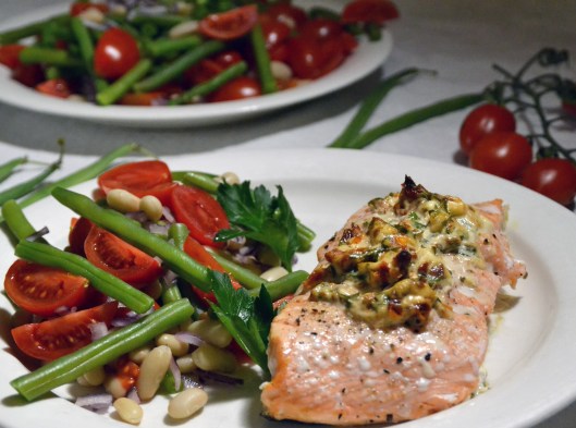 Om man vill äter man bönsalladen som enda tillbehör. Annars finns det mycket gott att välja på – potatismos, risotto, kanske en sallad med avokado…