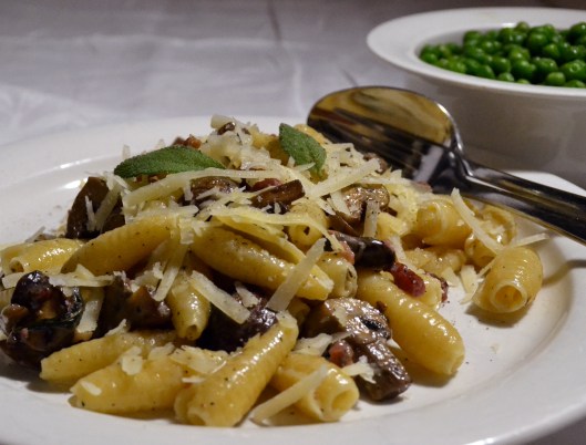 Vi åt den här pastan en vanlig vardagskväll vid det rustika slagbordet. Hustrun gillade maten, till och med 20-åringen gafflade i sig av salviasmakande sås och stekt svamp. Han är annars en svuren fiende till de små trinda funghisarna.