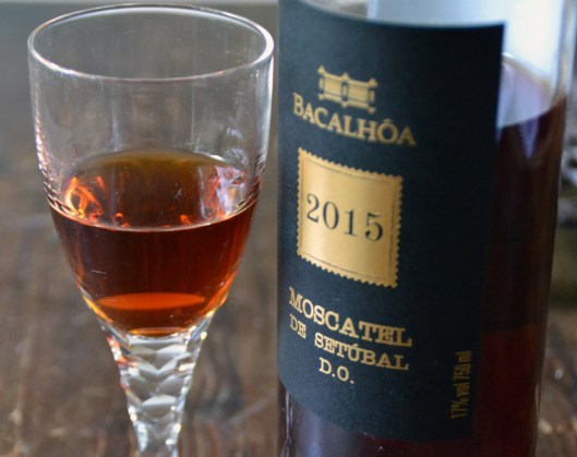 Det var en skvätt Bacalhoa 2015 (109 kronor, portugisiskt sött starkvin), som stod och väntade på oss. En färg någonstans mellan bärnsten och orange. Stor men ganska udda lukt av honung, marmelad och syra, äppelkällare och hjortron. Fyllig och söt smak med russin och fikon bakom brända toner.