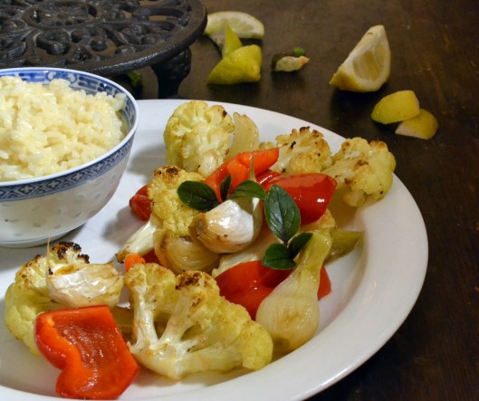 Addera blomkål och andra grönsaker som fått färg i ugnen, men fortfarande är lite al dente – så är helt hemma. I alla fall en vanlig vardag i september.