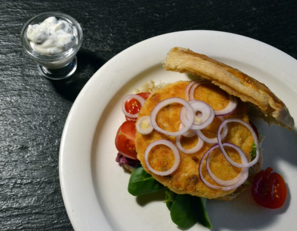 Den här gången bytte jag ut fryst torsk mot färsk lax. Vilket lyft! Burgaren fick en rund, tydlig fisksmak som gjorde att smaklökarna liksom ställde sig i givakt.