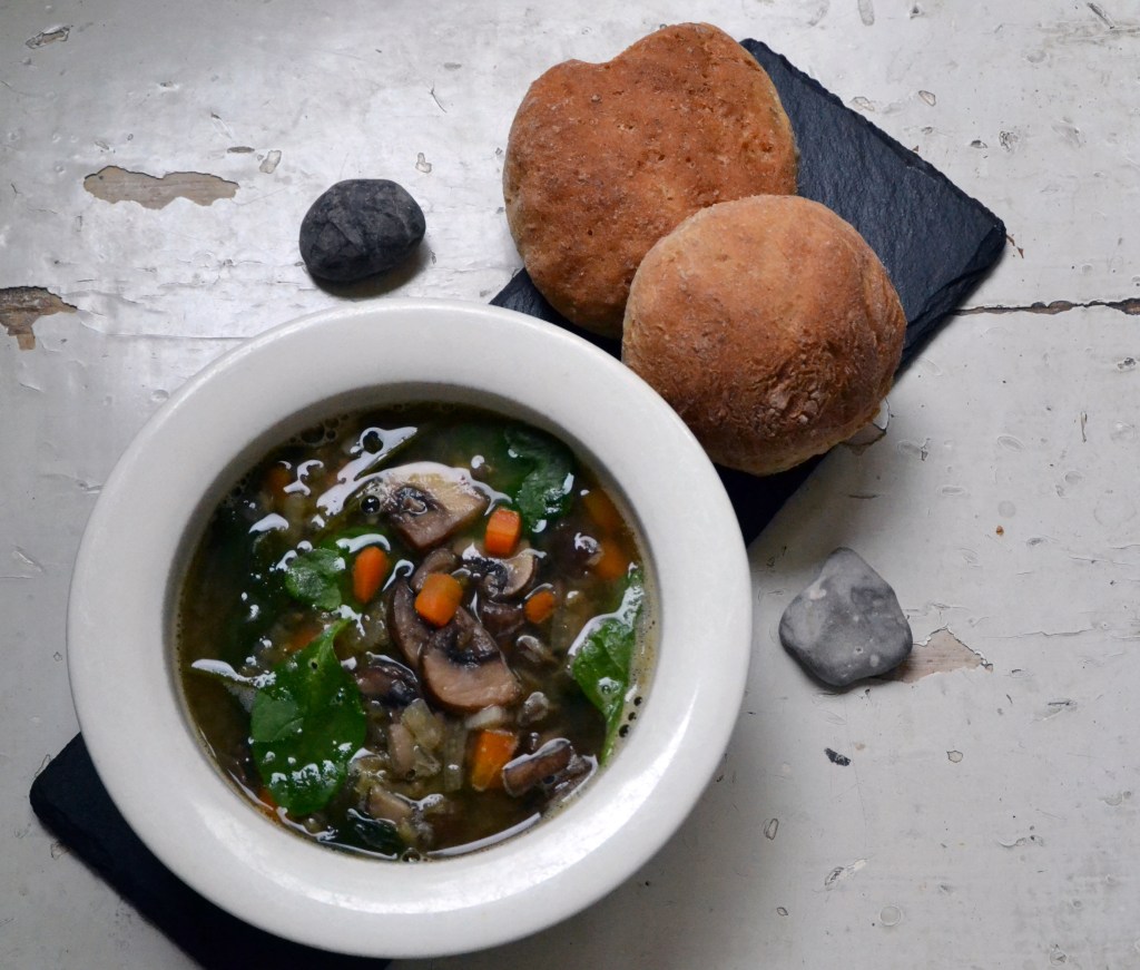Man tar lite svamp, kokar den tillsammans med lök och morot, linser och fänkål. På slutet trycker man i lite spenat. Och när man lyfter grytan från spisen så har man en mustig soppa med varma, djupa smaker. En soppa för hösten och dimman och mörkret.