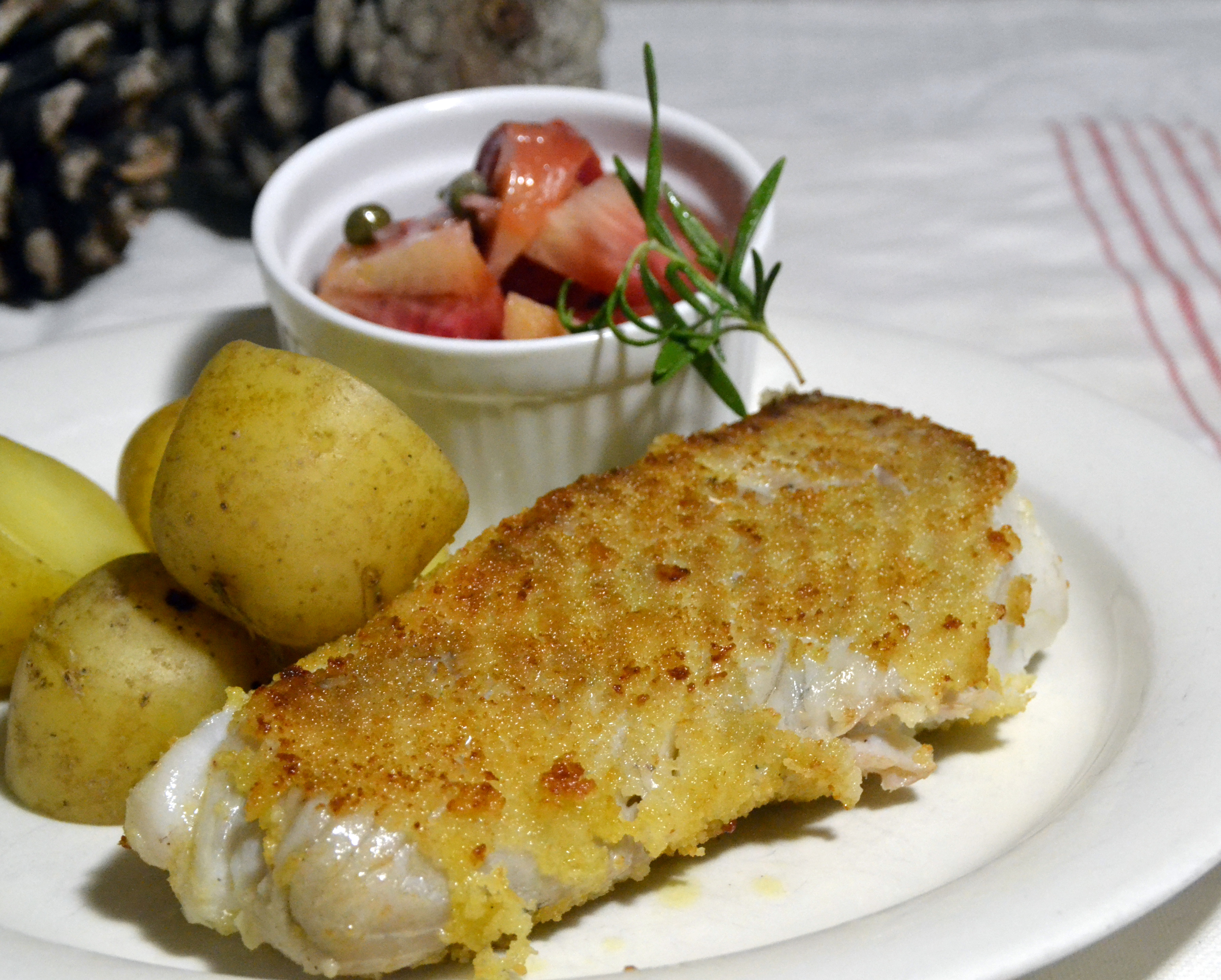 Söndag: Panerad sejfilé & sallad med polkabetor