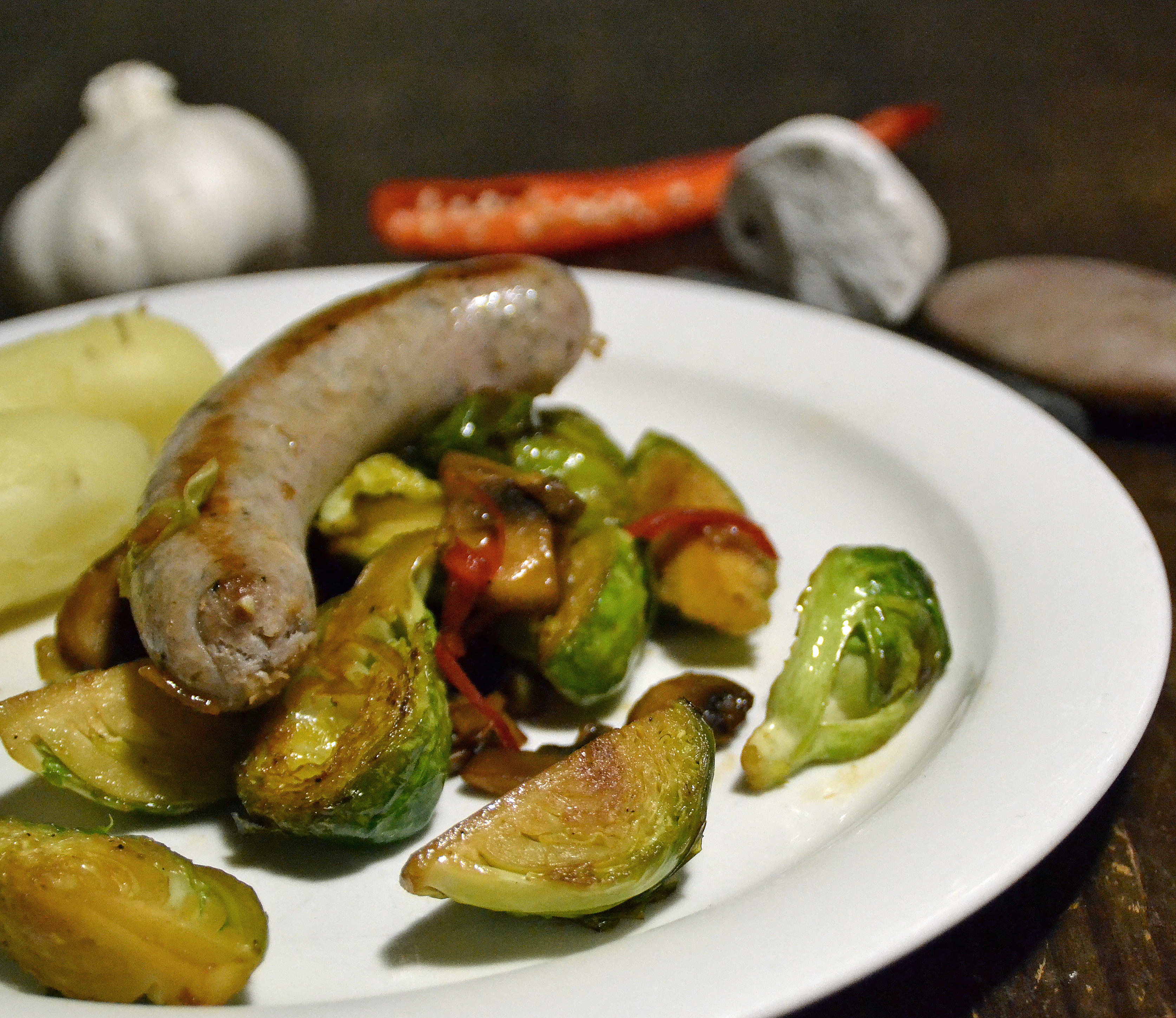 Om du vill funkar brysselkålen bra till en god korv – det var så vi åt den, som du ser av bilden. Men det som blev över frös vi ner för att ta fram till revben och köttbullar på juldagen.