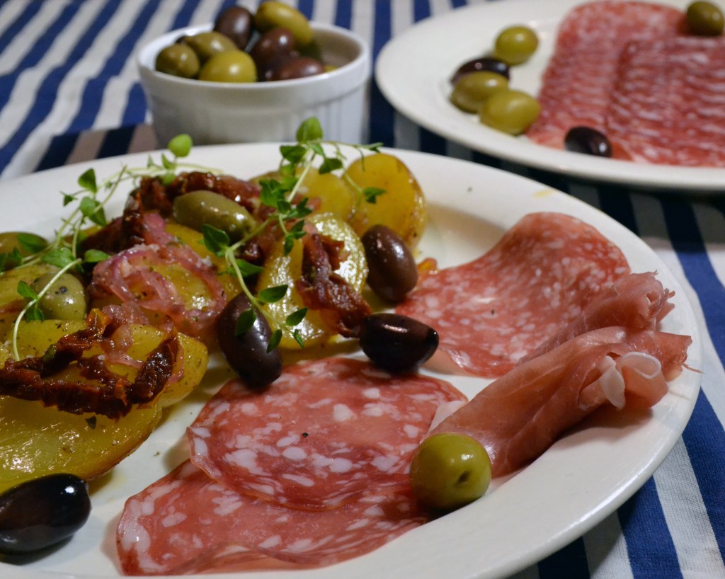 När vi ändå kör det här vårlika temat, så sitter det fint med en örtbakad potatissallad med soltorkade tomater. Unna dig bra potatis och goda soltorkade tomater, mycket mer prisvärda än de där blekröda sakerna som nu tar upp plats i affärernas grönsaksdiskar.