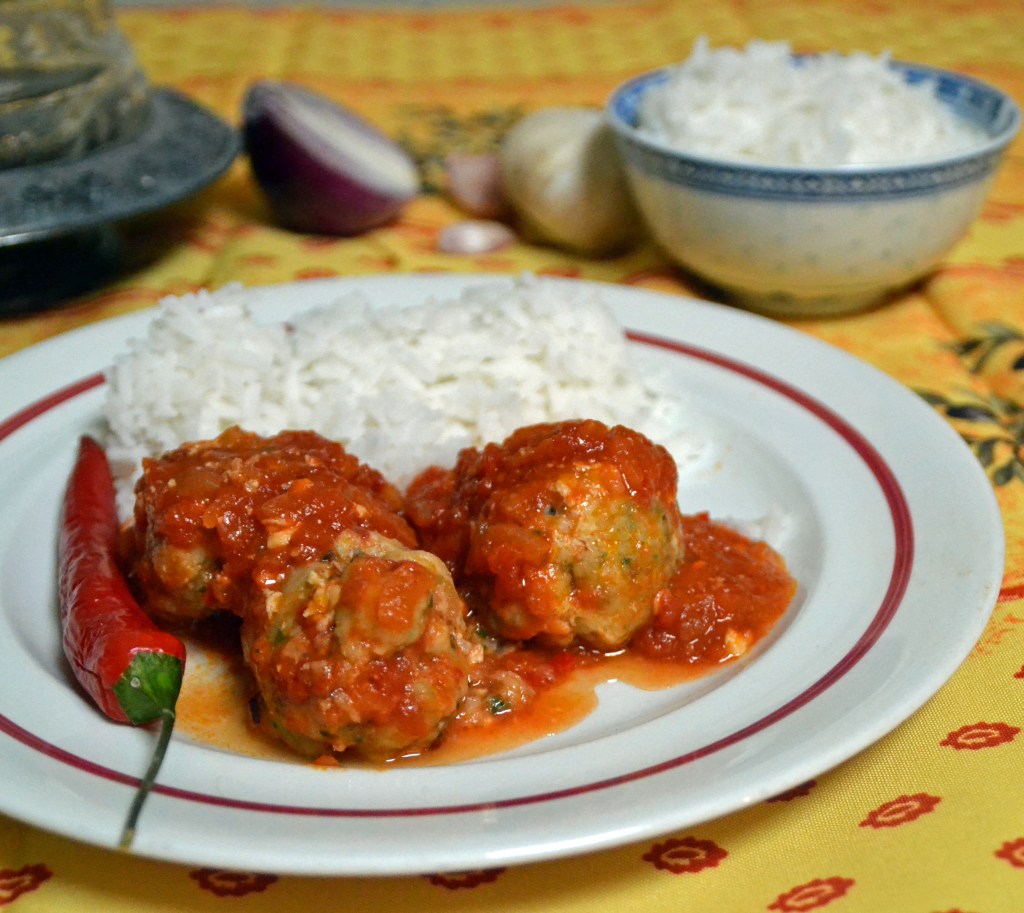 Så där höll jag på, och stuvade om lite i receptet. Det är därför jag kallar fiskbullarna för ”nästan senegalesiska”.
