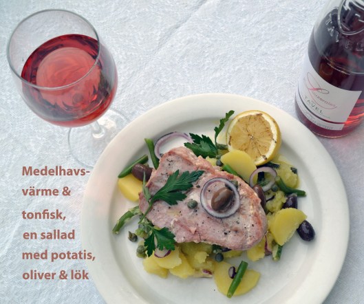 Sedan är det dags att dra fram grillen. (Ja, vem har sagt att man inte kan grilla på påsk?). Ta några skivor tonfisk (frysta funkar bra), lägg dem på grillen och ät med en fransk potatissallad. I glaset en skvätt av årets första rosévin.