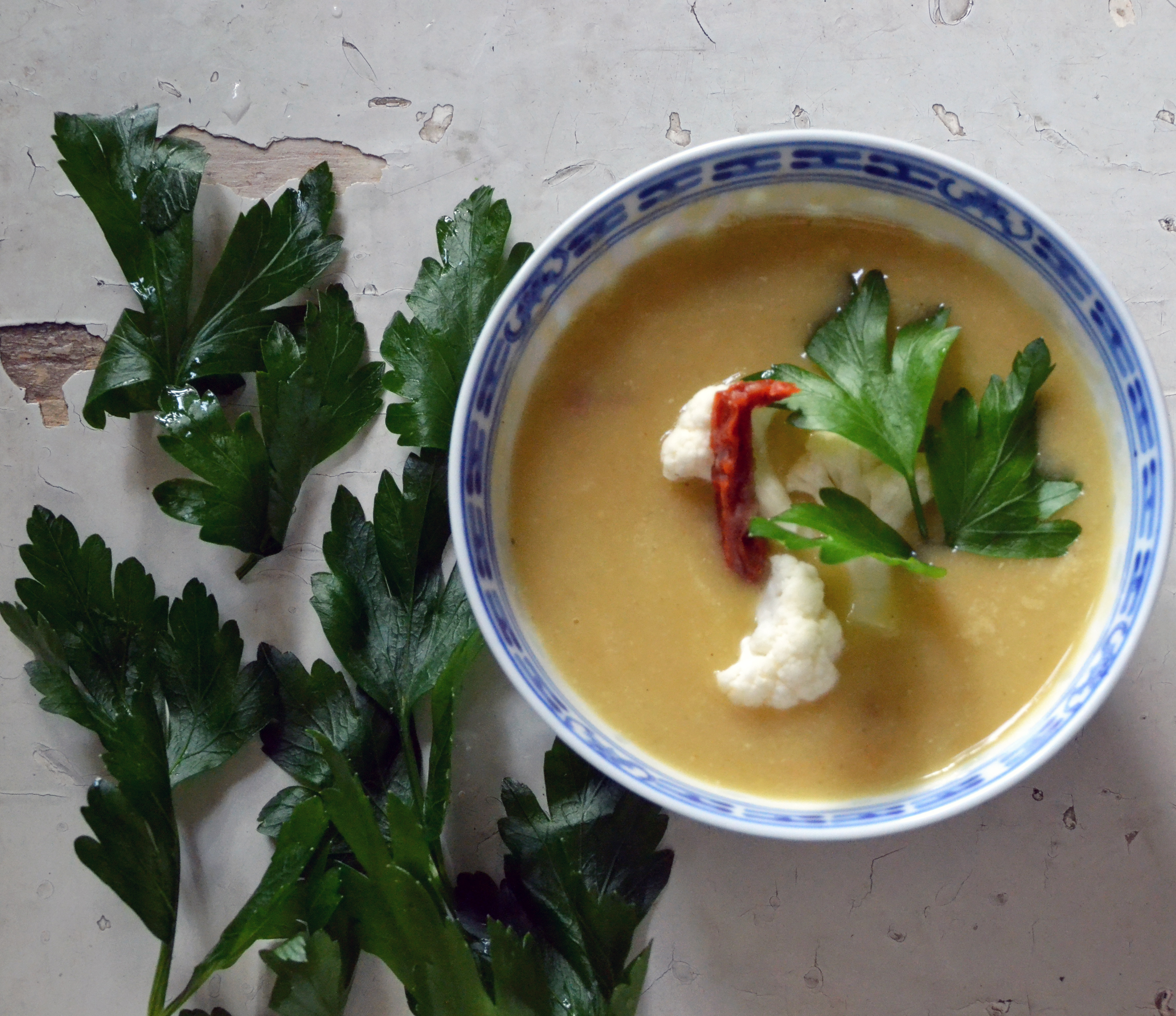 Och linssoppa med blomkål & soltorkade tomater är mat som gör det värt att leva.
