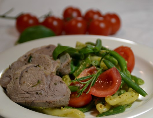 Pensla fläskfilén med marinaden runt om. Salta & peppra. Låt fläskfilén stå och gotta sig i marinaden en stund. Bryn köttet i olivolja i en stor stekpanna, så det får fin färg. Pensla gärna på mer marinad. Dra ner värmen och stek på ganska låg värme i ca 10 – 15 minuter till köttet har en innertempertur på 68 – 70 grader. (Det går också att känna med fingret. När köttet känns stumt när du trycker på det, då är det färdigt.) Låt det vila i några minuter innan du skär upp det.