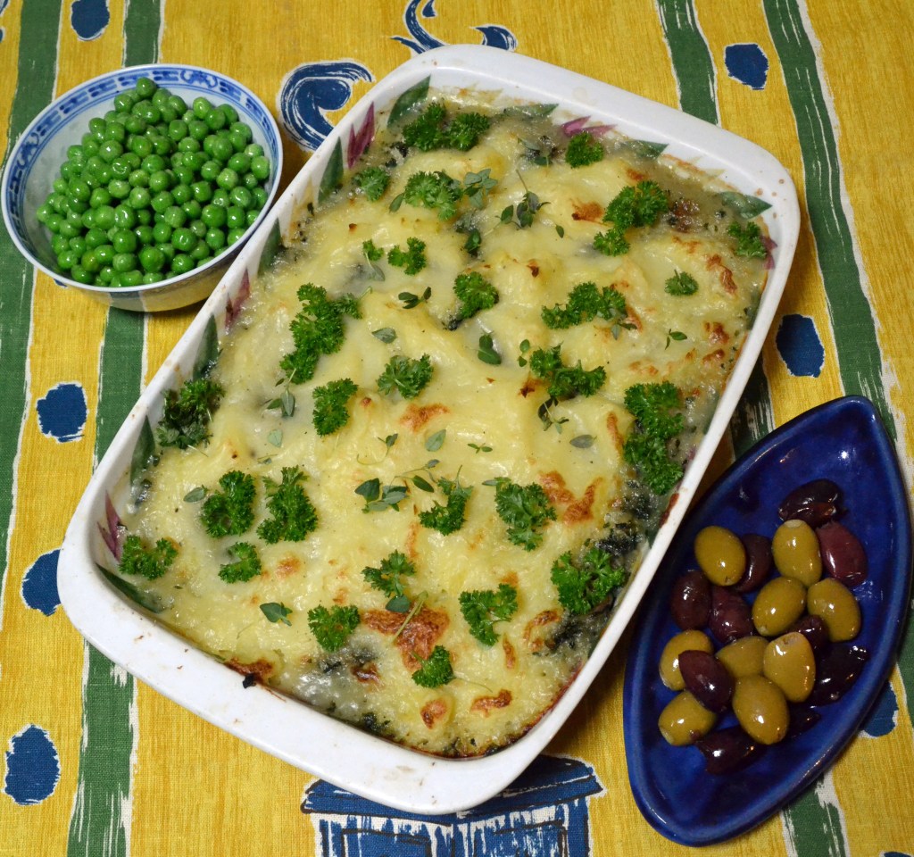 Klyftpotatis eller potatismos, kanske lite stekta ärtor