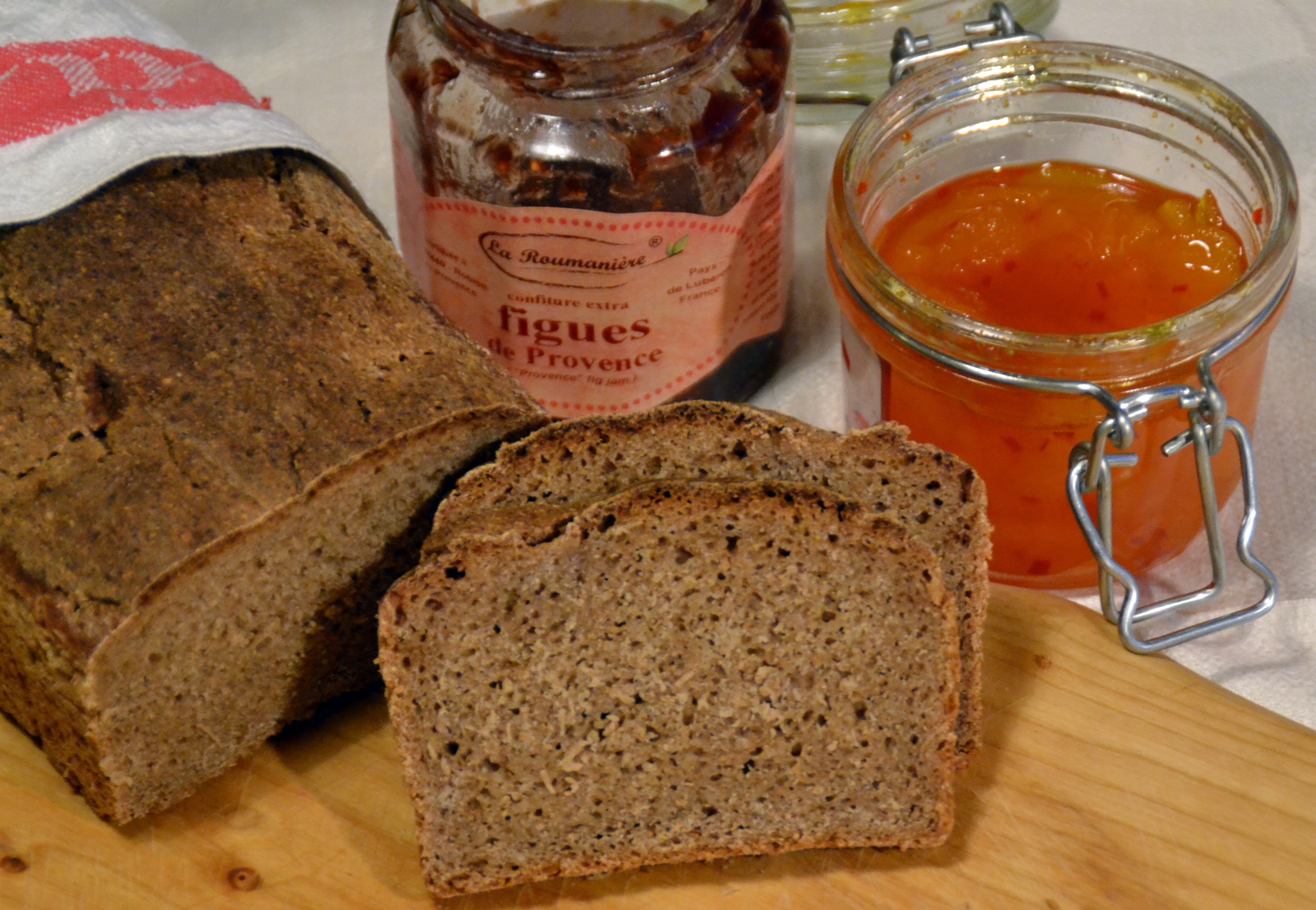 Stjälp upp degen på ett väl mjölat bakbord. (Det här blir en ganska kladdig deg). Knåda degen med mycket mjöl ett par gånger. Dela degen i två lika stora delar. Forma till 2 bröd som du lägger i formarna. Låt dem jäsa under bakduk i 2 timmar.