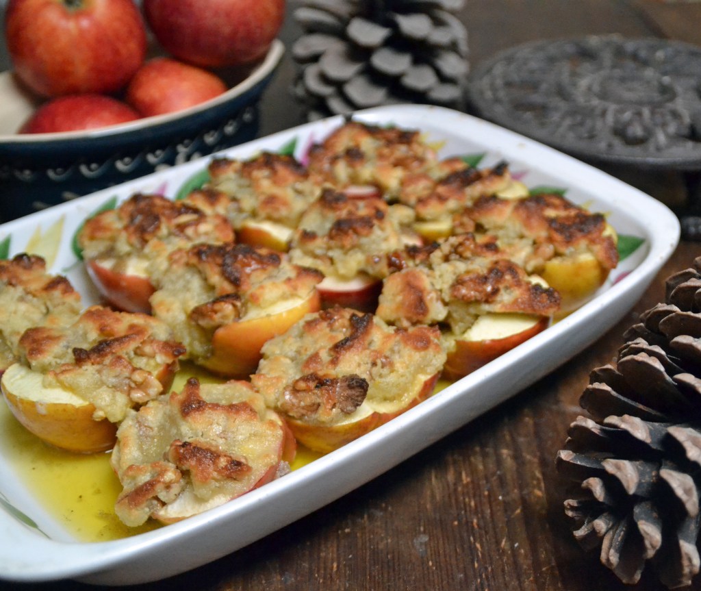 Varmrätterna kan verka lite ovanliga – ugnsstekt lax och janssons omelett – men laxen finns där eftersom alla i familjen inte är så förtjusta i mer traditionell julmat. Och jansson omelett är en krämigare och lite mildare jansson, helt i min smak.
