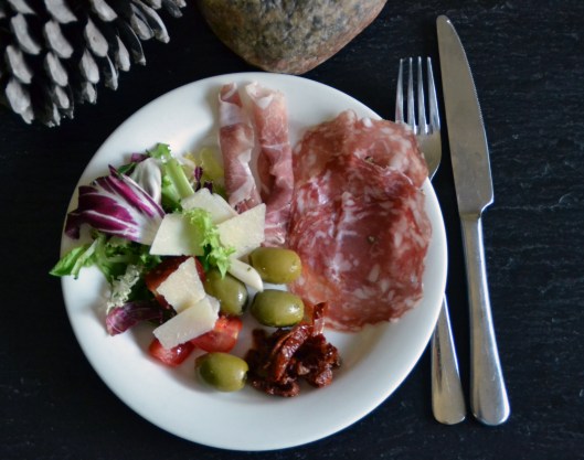 Den börjar med ett glas bubbel eller kanske lite rosé. Till det några små smakbitar och snittar med laxmousse & lufttorkad skinka. Jag har snott delar av konceptet från en apéro som vi blev bjudna på av Chantale och François, några grannar som vi hade under ett par semesterveckor i Ronce på franska Atlantkusten för ett par år sedan.