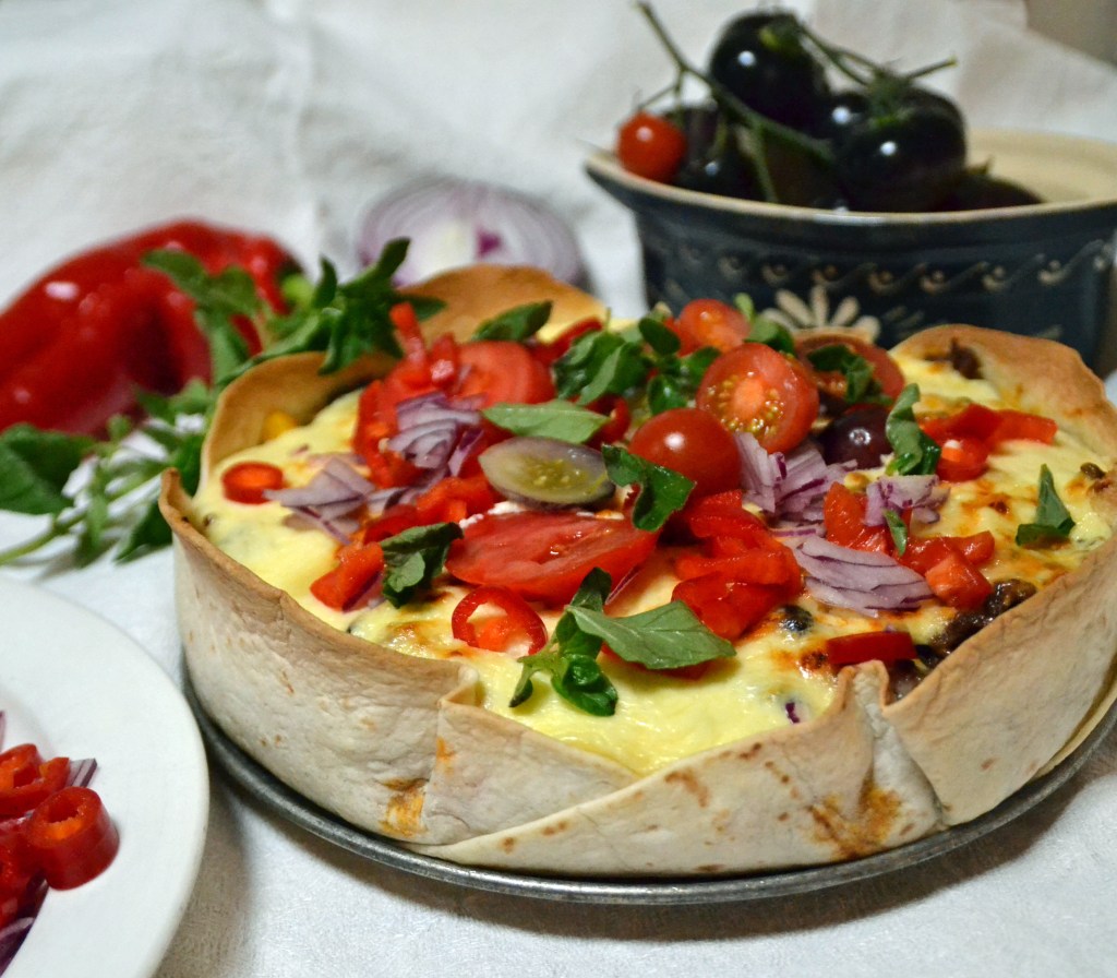 Jag snodde idén med tortillabröd som ”pajskal”, men grejade runt med fyllning och kryddning – och på en punkt lade jag in mitt veto.