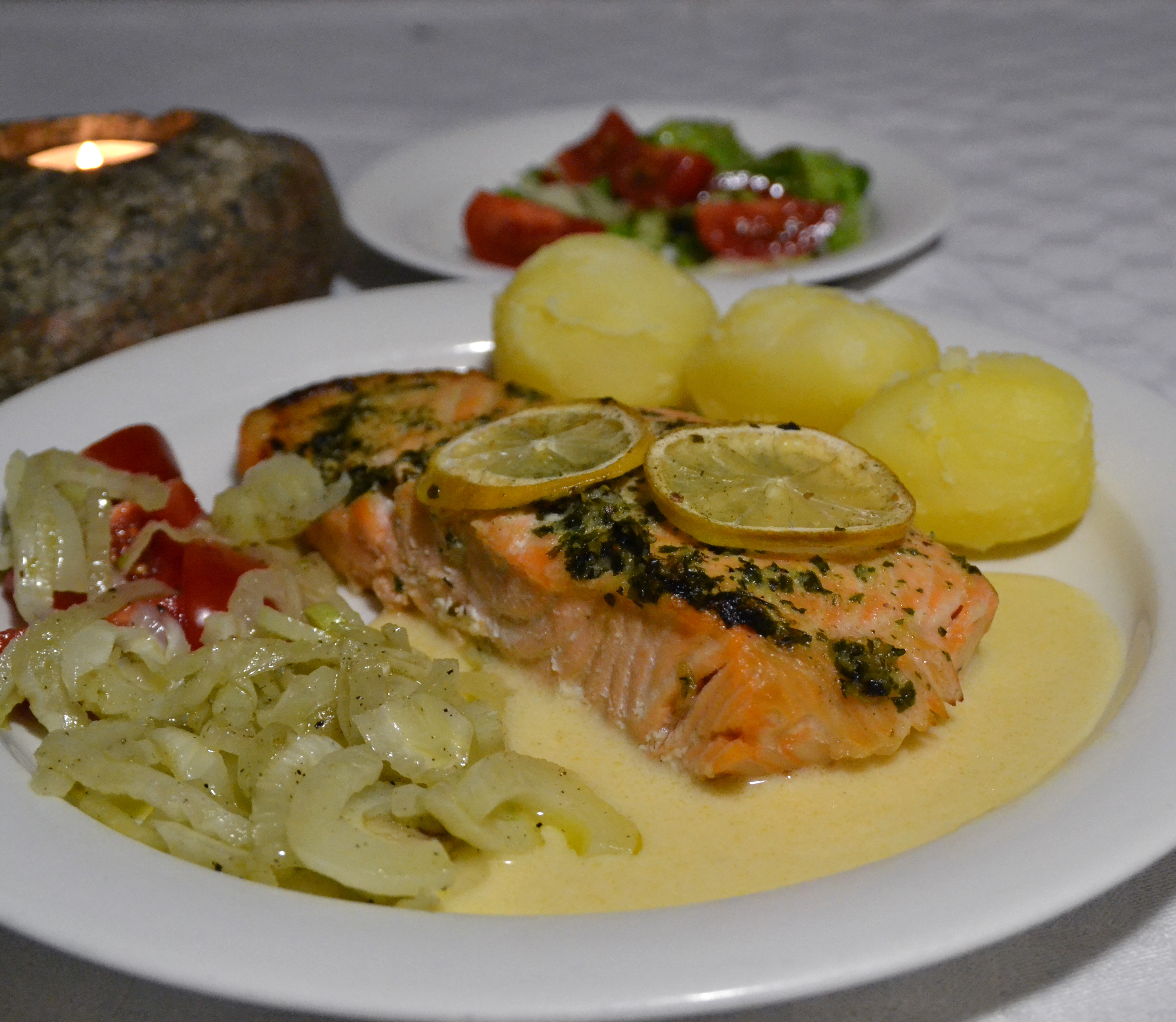 Jag har gett upp det där med att grava lax och lägga in sill. Det finns faktiskt rätt mycket bra att köpa, men skulle du vara sugen så kan du söka recept på bloggen. En sak finns inte i affärerna: Matjessill med dill och Fräschare matjessill-sallad. Det är två röror eller sallader på matjessill och gräddfil. Gott, tycker jag.