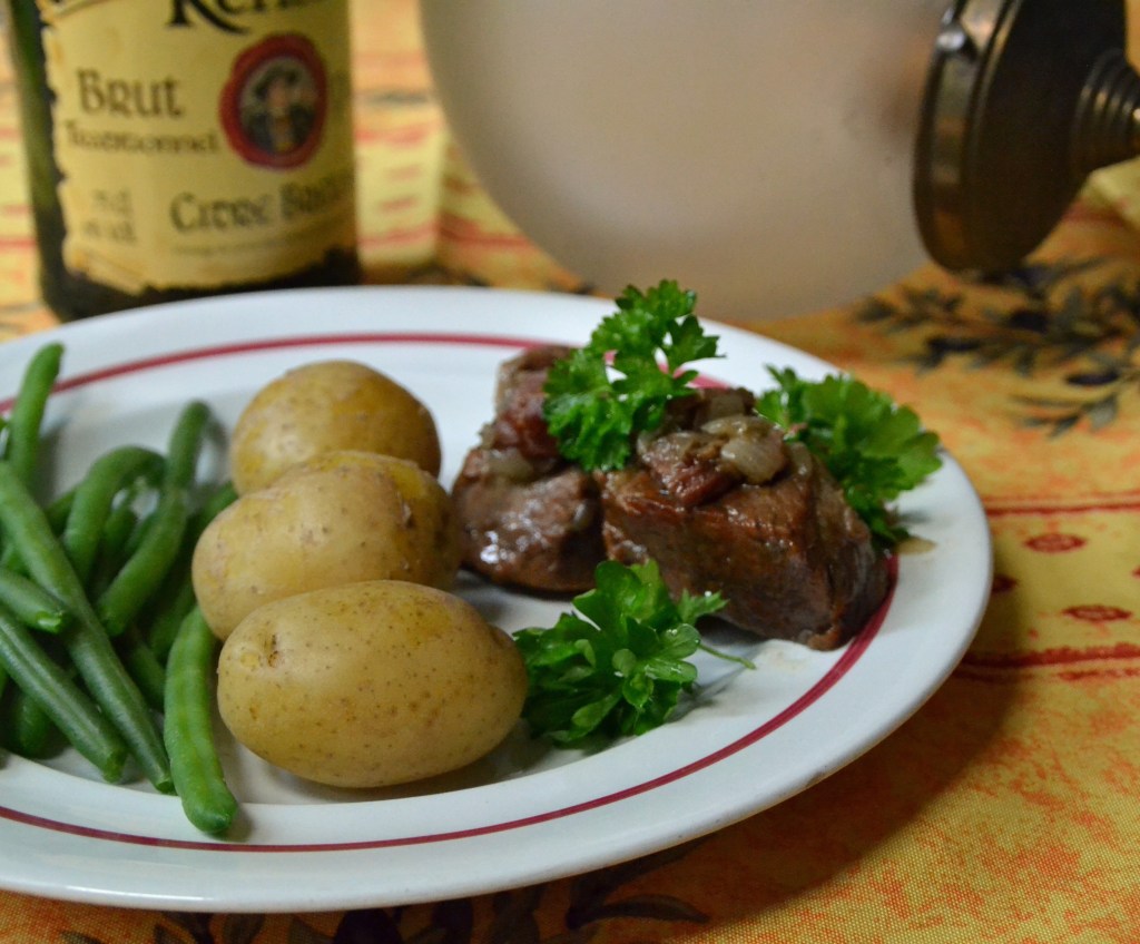Mest känd är kycklinggrytan från Normandie, men här är kyckling utbytt mot lamm. Det blir som en provkarta över Normandies landskap: cider från alla äppelodlingar, crème fraiche från korna och så kött från de får som betar de kargare delarna av kustlandskapet.