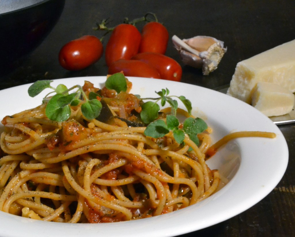 Måndag: Spaghetti med aubergine & tomatsås