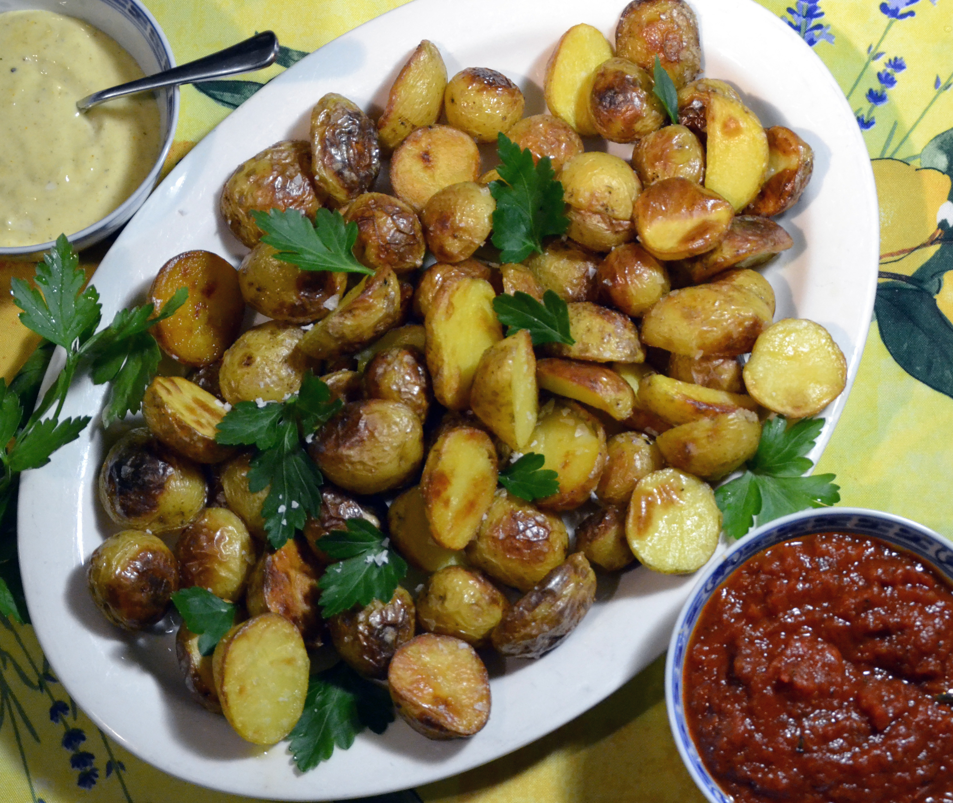 De här potatisarna är magiskt goda, men ta potatis av god kvalitet och använd mycket olivolja. Ät med tomatsalsa, aioli, ägg, hummus…