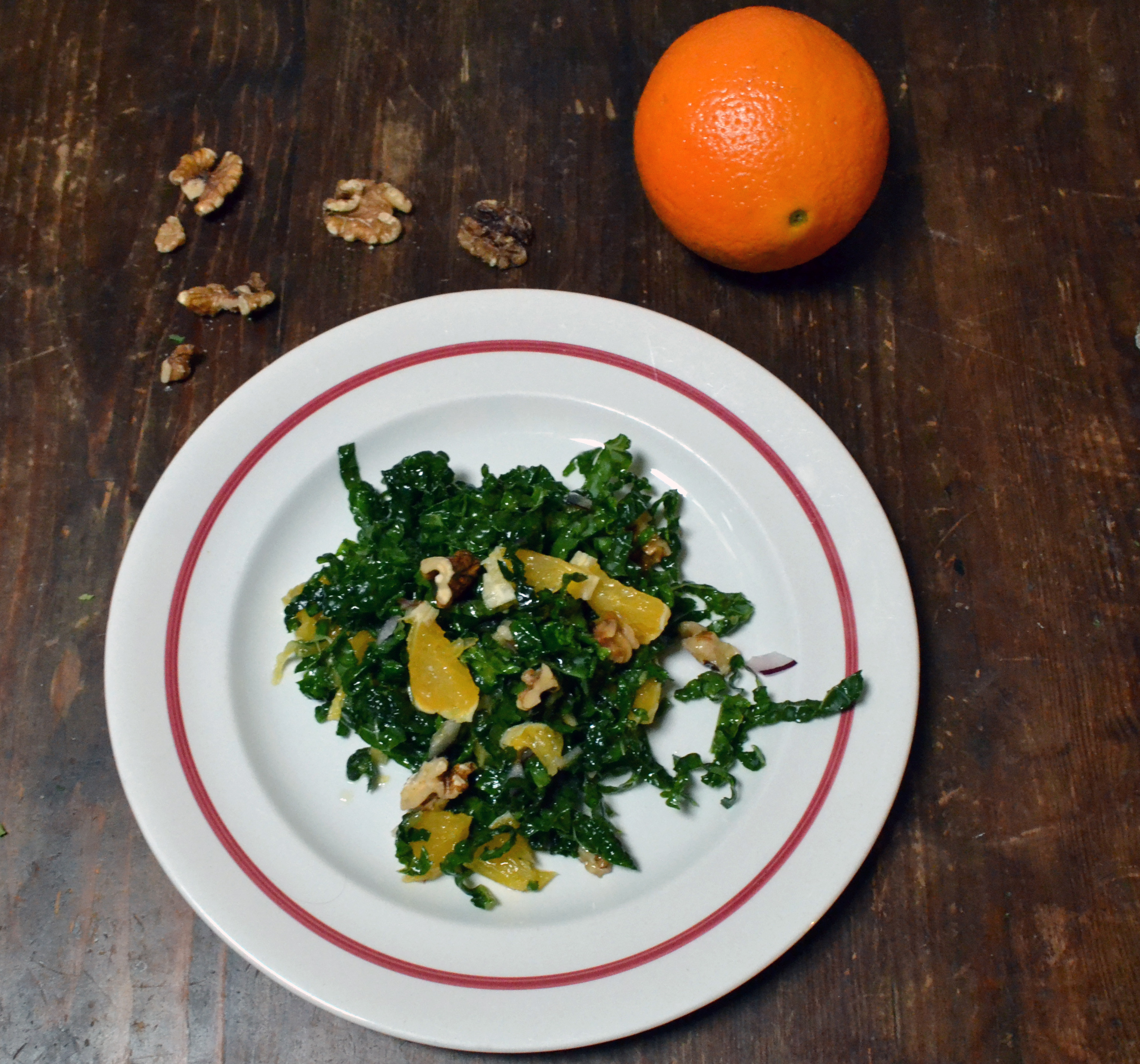Här en sallad där den milda kålsmaken får en kick av apelsinen och aningen beska av valnötterna. Gott om du frågar mig.