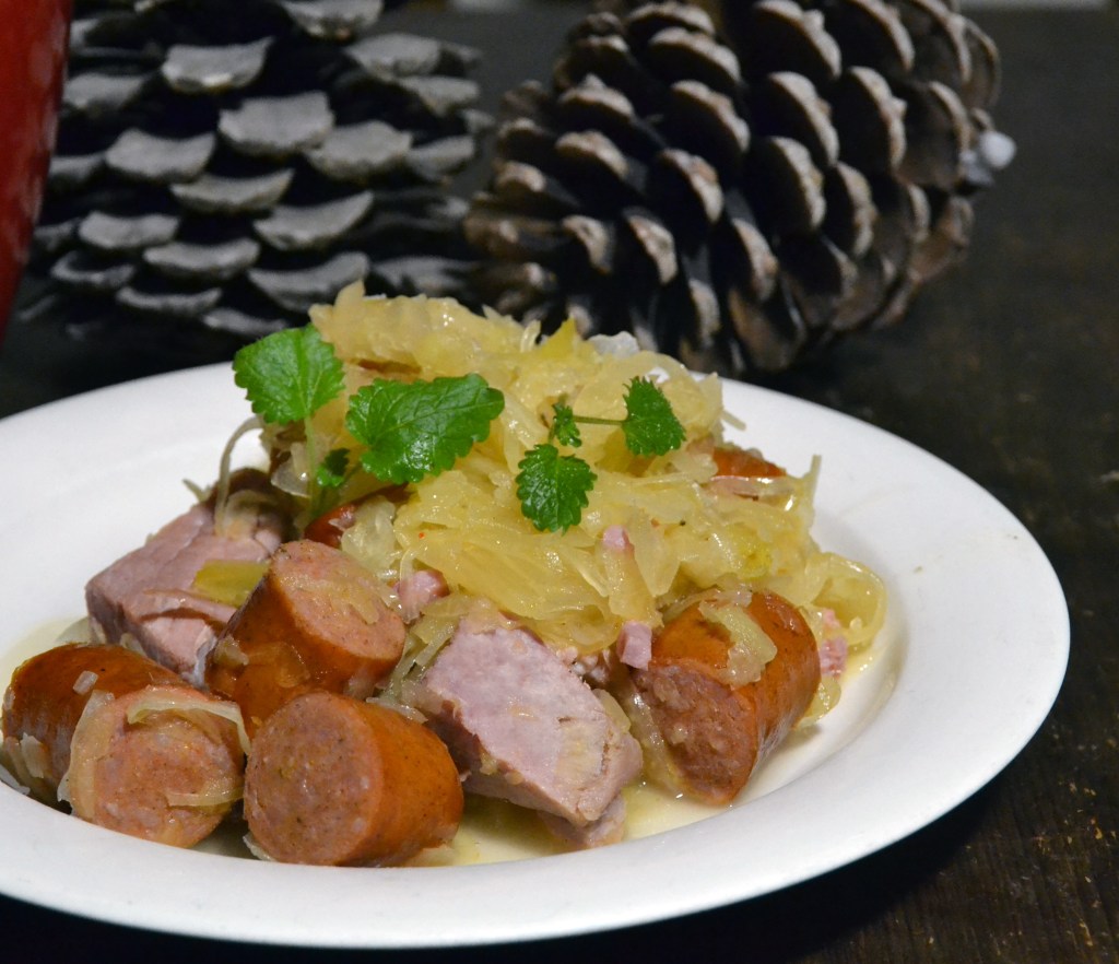 I kylen ligger en rimmad skinka och väntar. Den kokar jag i vin och äpplemust senare i kväll. Smaken blir rund och fyllig – och så får man en fantastisk buljong till vinterns grytor i januari och februari.