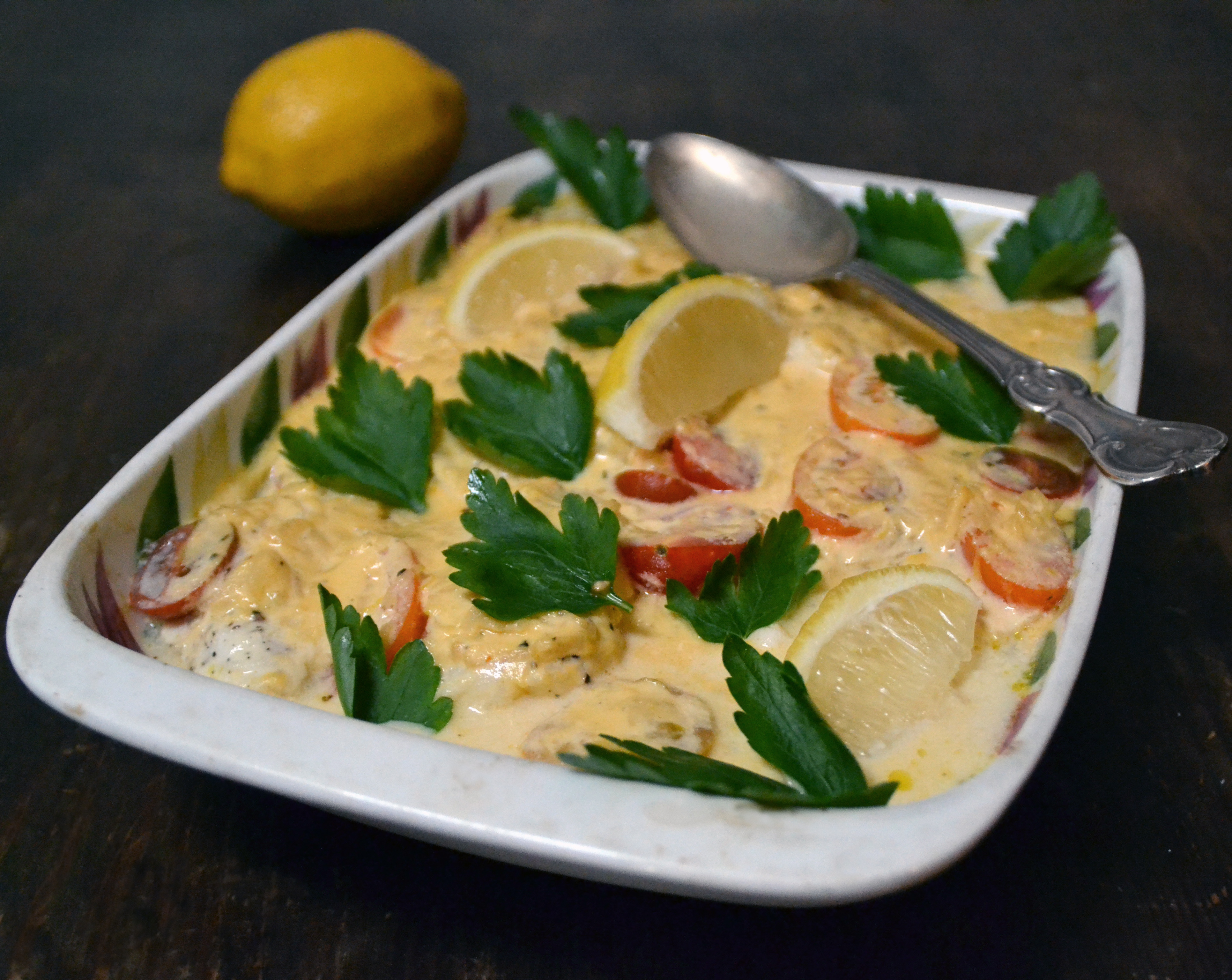 Ta ut ugnsformen och strö över hackad persilja.