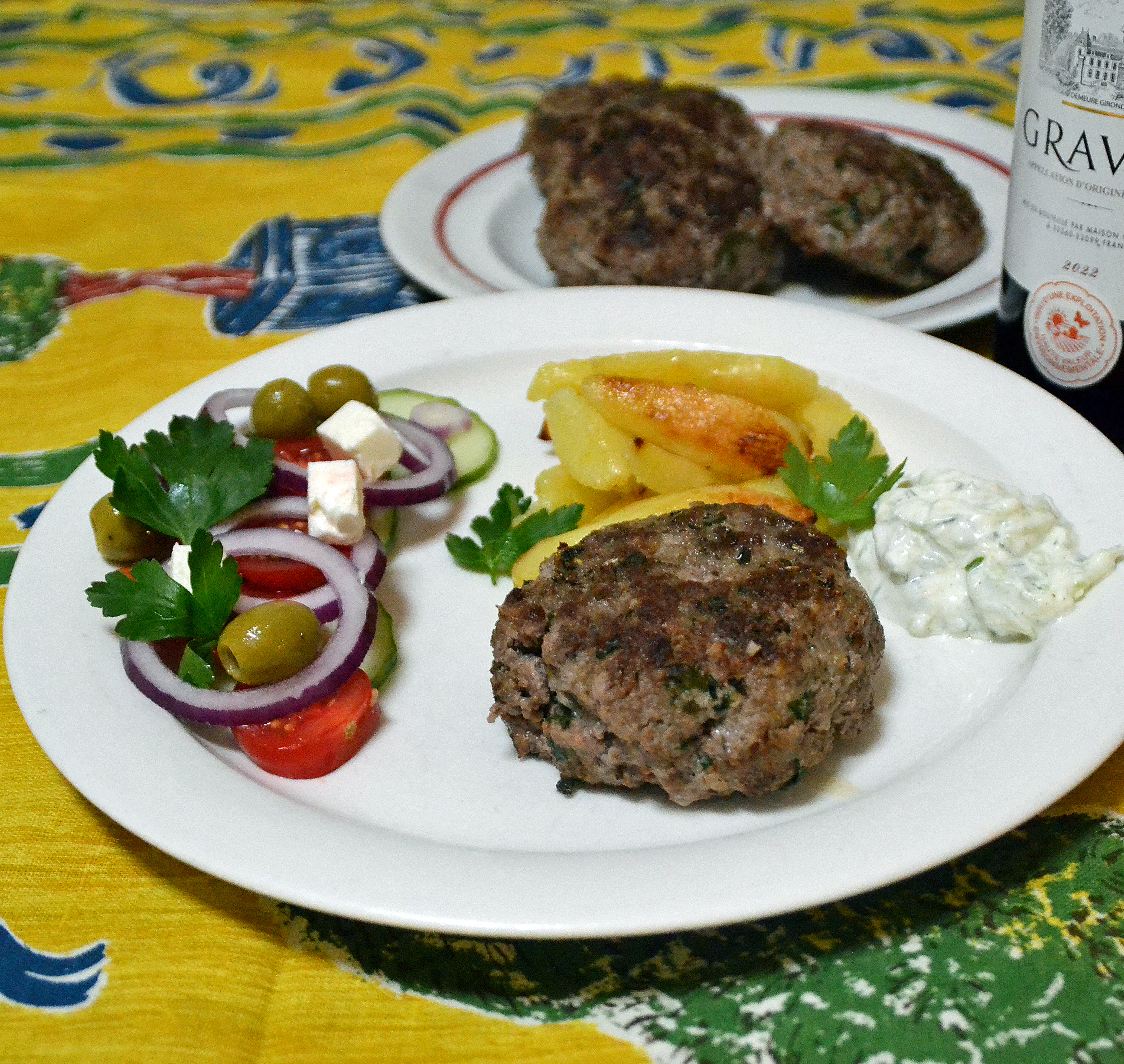 Eller också går man all in på det grekiska spåret. Då blir det oliver, tzatziki och grekisk sallad. Som du ser av bilden valde vi det alternativet.