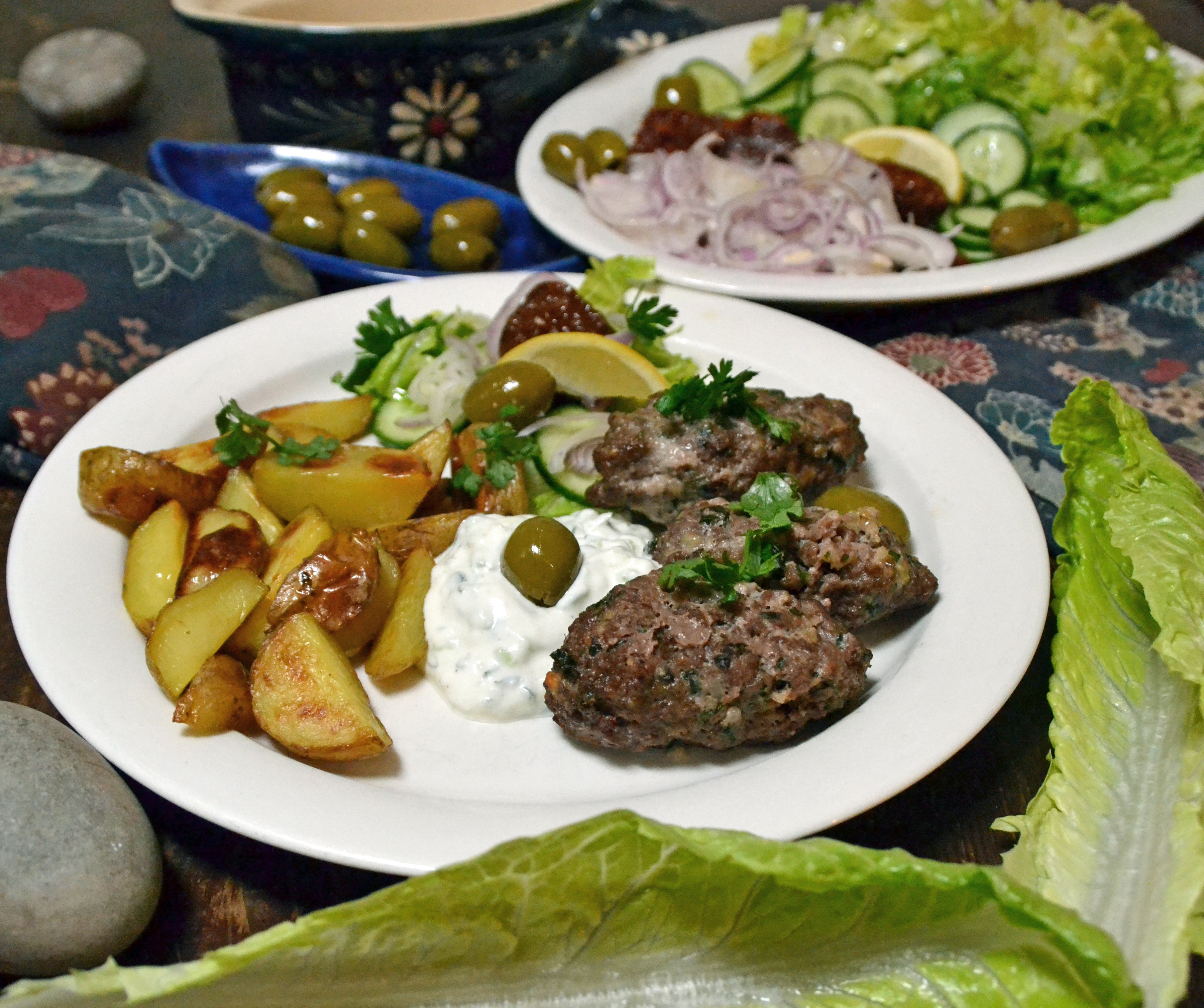 som en del av en buffé, eller med klyftpotatis, tzatziki och grekisk sallad
