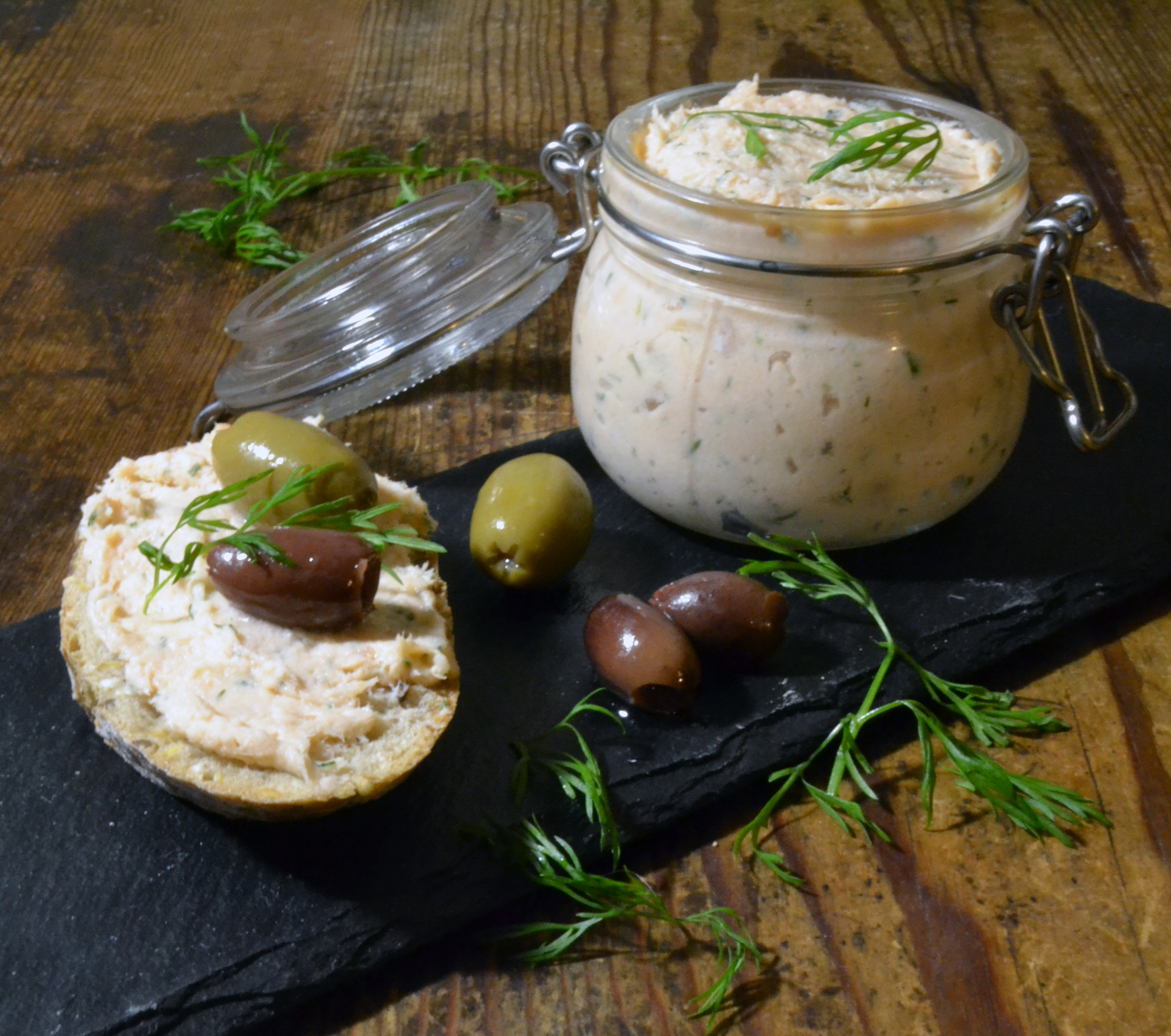 Är du mer inne på ett glas vin för de där grannarna som du bjöd in, så är jag svag för rillette, alltså en röra – lite som bredbar paté. Här finns recept på rillette de porc, fläsk, rillette de saumon, lax, och en vegetarisk champinjon- & valnötspastej.