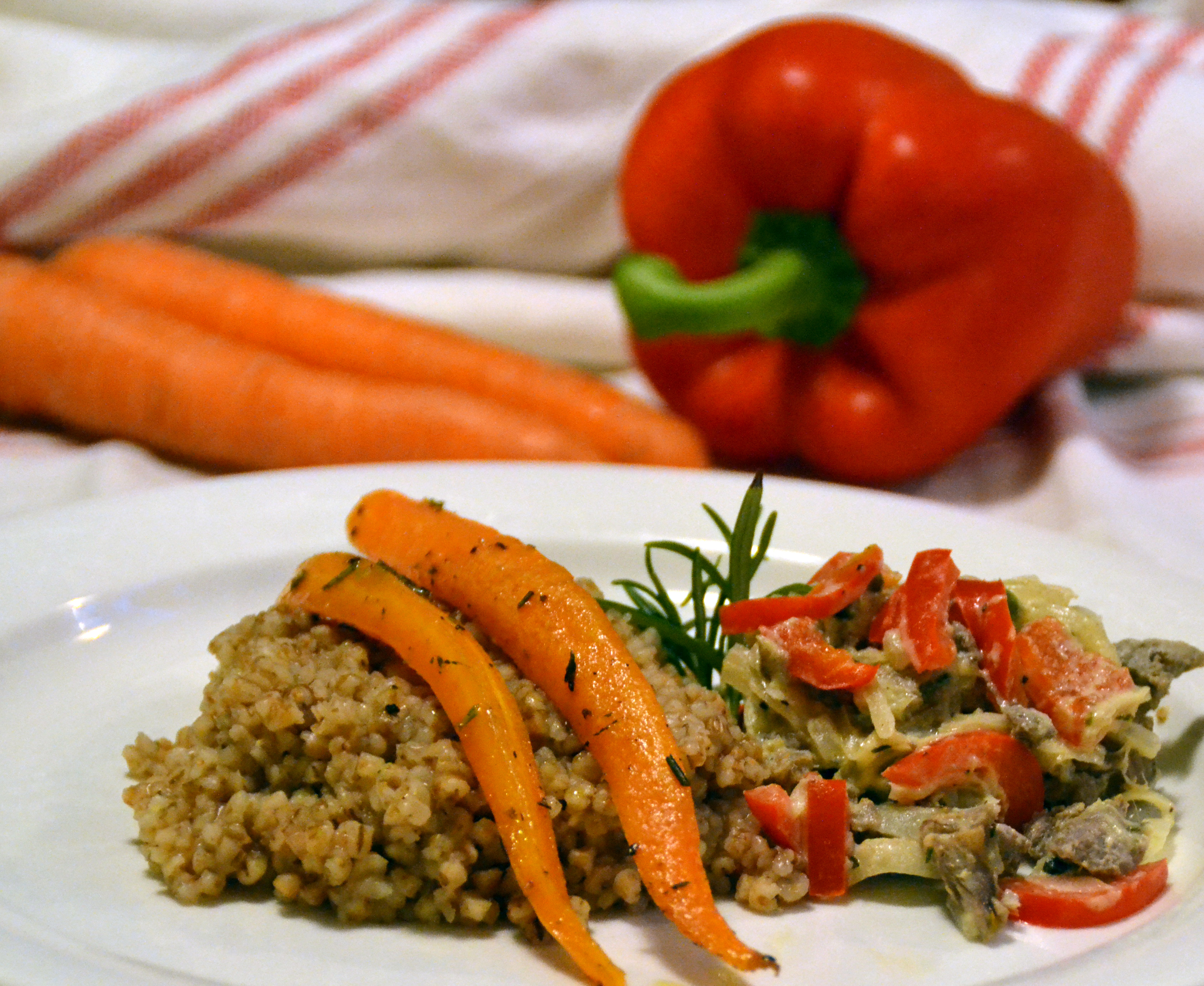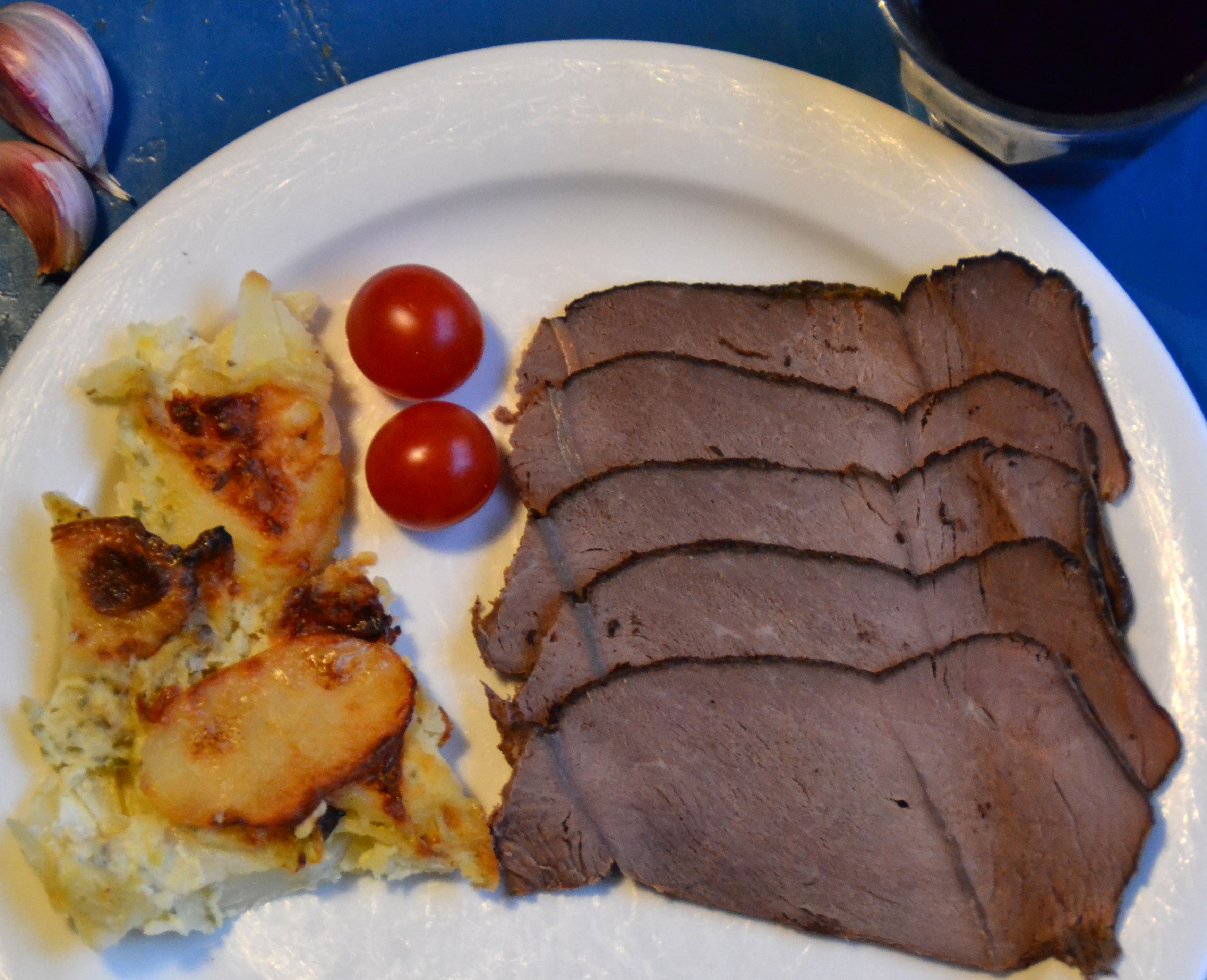 Hmmm. Men titta, vi har ju vildsvinsfärs i frysen. Och så kan man ha tomatsalsa och sallad till vildsvinsburgare. Det blir ju massor med grönsaker. Och brödet, surdegsbröd måste väl vara ok. Tycker du inte det surputt där uppe?”